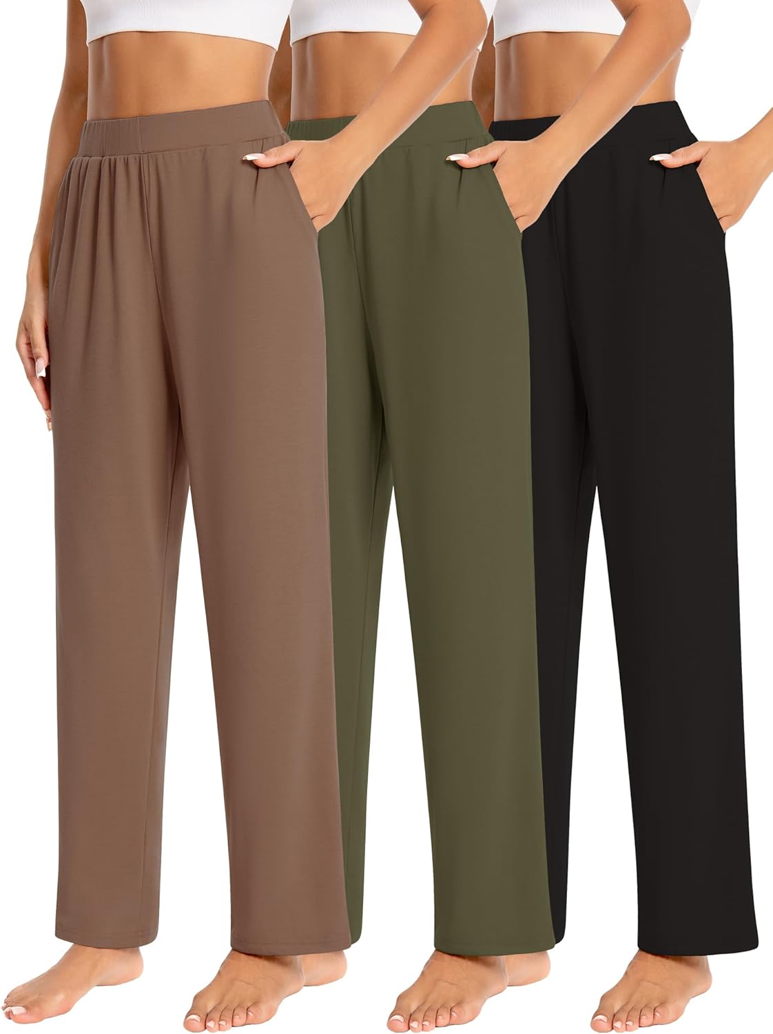 3 Pack Women's Lounge Pants Wide Leg Sweatpants with Pockets Elastic Waist Yoga Pant Casual Loose Jogger