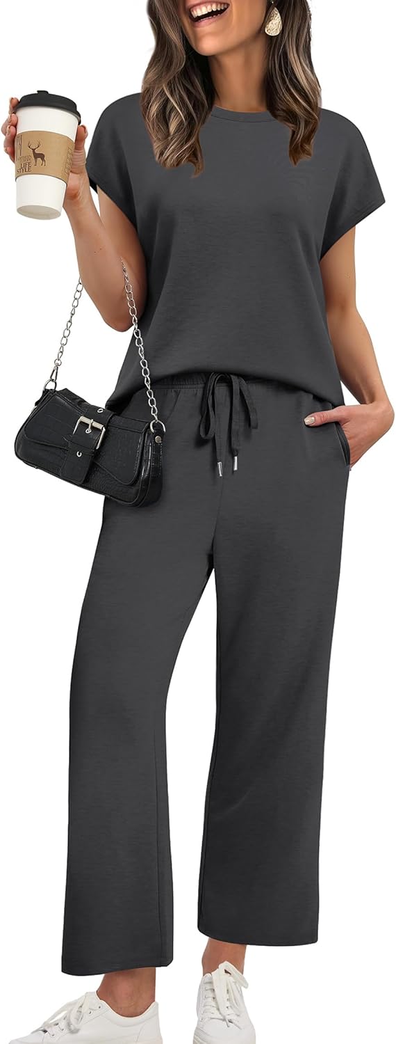 XIEERDUO Women's Cap Sleeve Lounge Sets 2 Piece Travel Outfits Airport Tracksuits Wide Leg Loungewear S-3XL