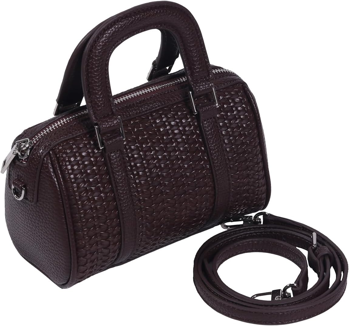 YOXIER Mini Crossbody Handbag, Woven Pattern Boston Bag with Chain Strap, Orange, 7.9 x 3.95 x 4.72 inches