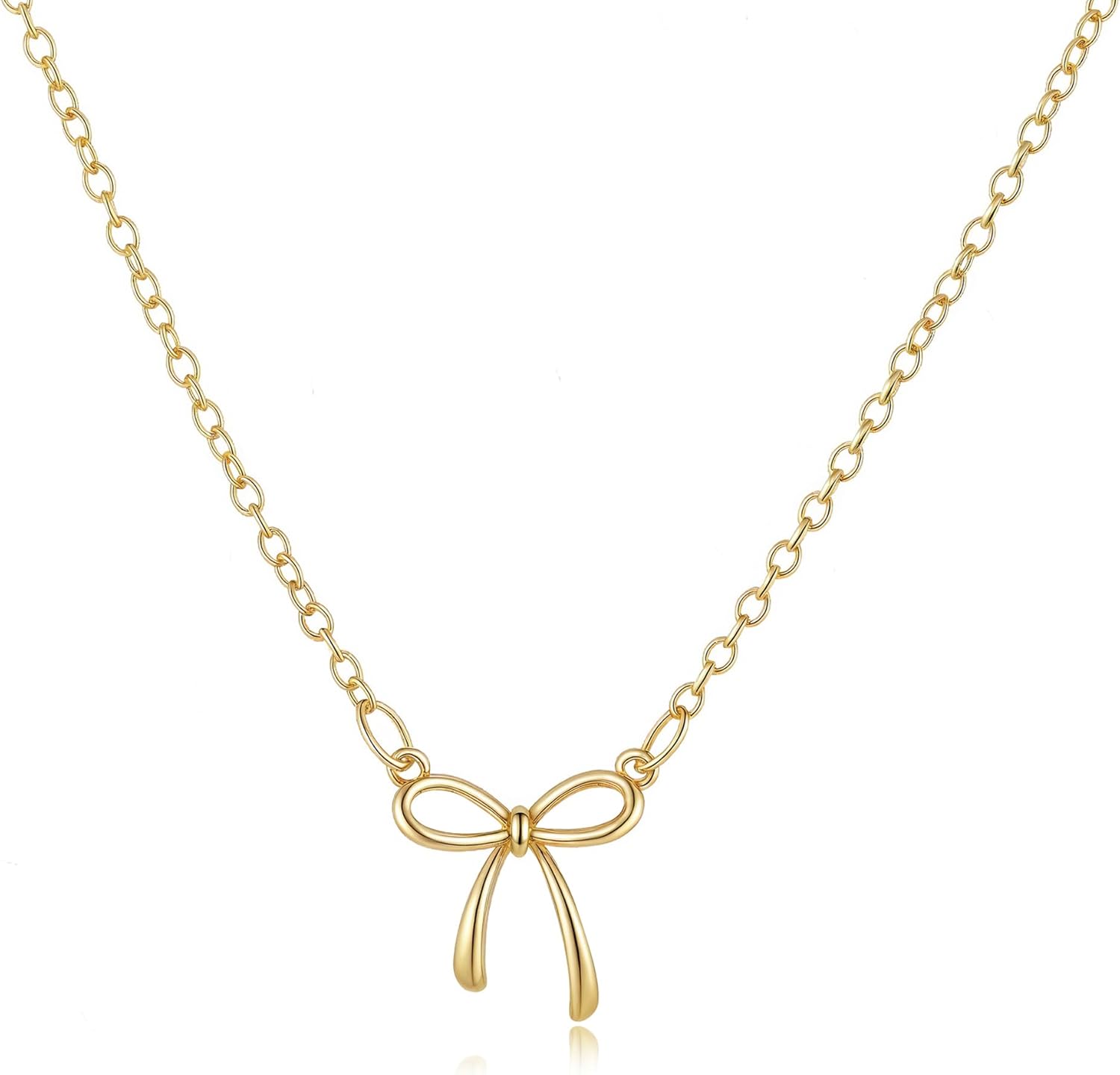 Gold and Silver Plated Flat Snake Chain Choker Necklace – Dainty Heart Pendant Necklace for Women, Elegant Bow and Cross Pendant Necklace, Ideal Valentine’s Day & Mother’s Day Jewelry Gift for Her