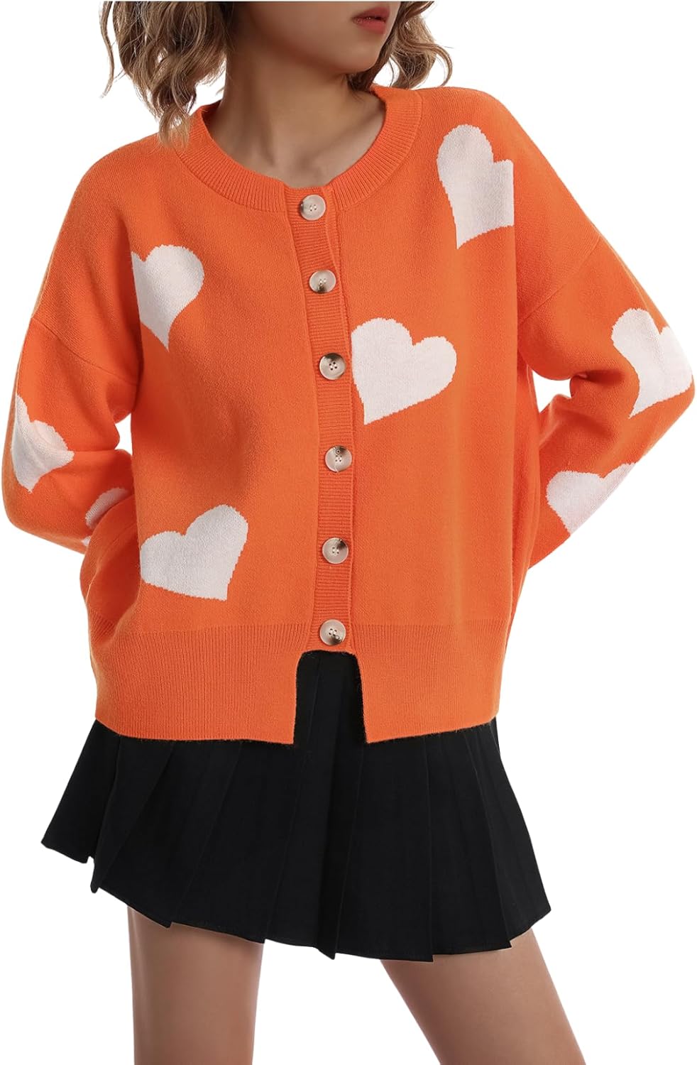 Women's Oversized Knit Cardigan - Cute Flower Pattern Loose Long Sleeve Round Neck Sweater for Autumn Winter
