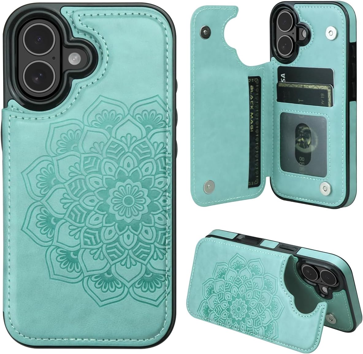 - Great Quality: made of premium pu leather, feels good and last long; the upgraded magnet closure works wonderfully, it has a sturdy snap to close, it's very securely holds ID and cards; with the excellent mandala flower embossed crafts and convenient design, you will receive many compliments on this nice wallet case.