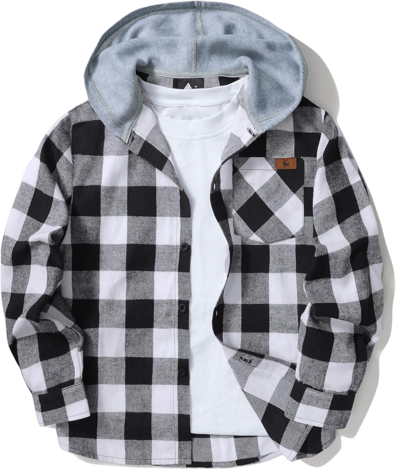 Boys Plaid Flannel Shirts Unisex Kids Long Sleeve Casual Button Down Shirt with Hood