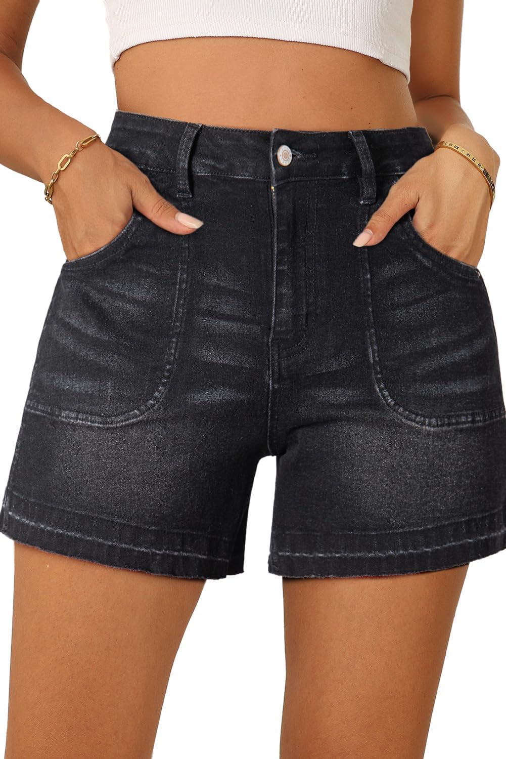Dokotoo Womens Jean Shorts Stretchy High Waisted 2025 Straight Leg Frayed Raw Hem Casual Denim Shorts with Pockets