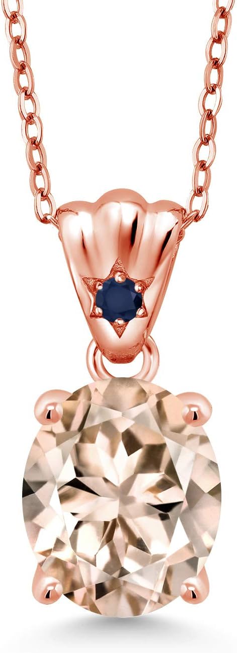 Gem Stone King 3.24 Ct Oval Peach Morganite Blue Sapphire 18K Rose Gold Plated Silver Pendant