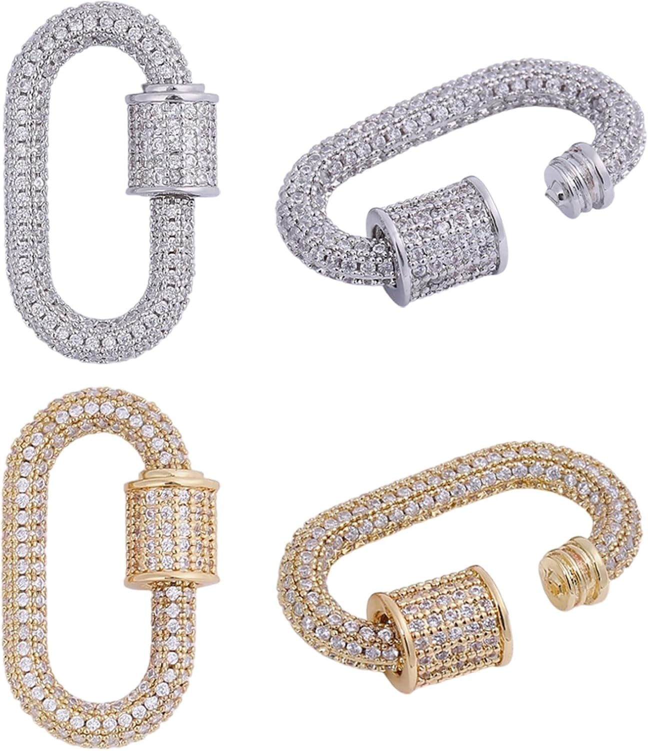 2PCS Necklace Clasp Rhinestone Oval Screw Carabiner Lock Charms Clasps Shortener Bracelet Keychain Necklace Sweater Pendant for Decoration Jewelry Crafts Making
