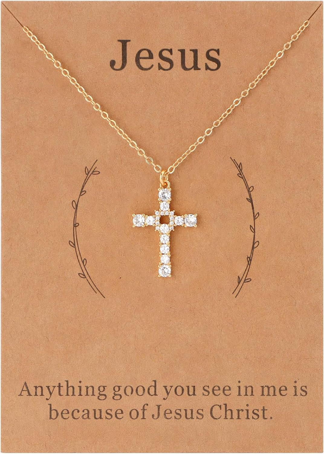 Lcherry Cross Necklace for Women, 18k Gold-plated Cubic Zirconia Jesus Cross Pendant Necklace Christian Baptism Confirmation Gifts for Women