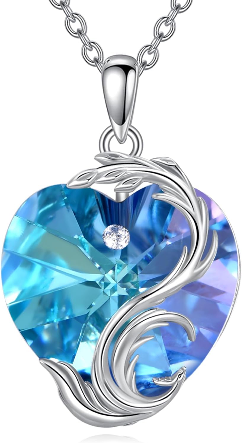Phoenix Necklace Sterling Silver Heart Crystal Pendant Heart Jewelry Gifts for Women Mother