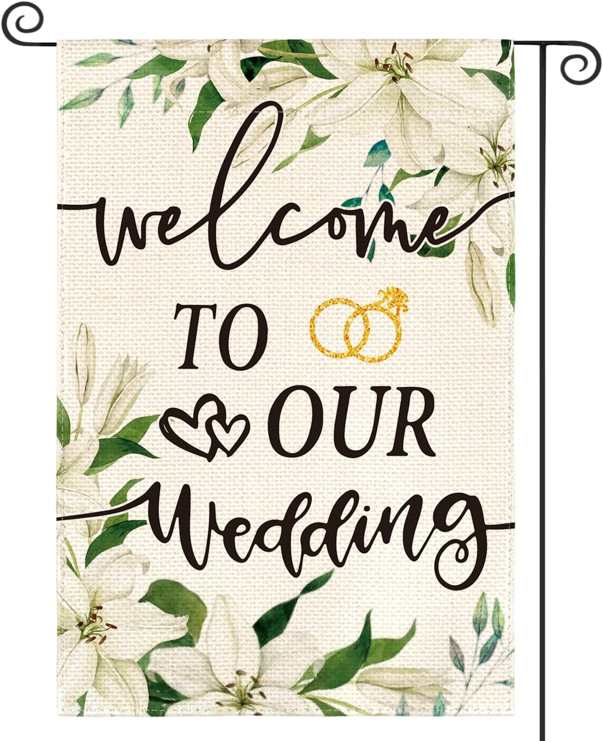 AVOIN colorlife Floral Wedding Ceremony Garden Flag 12x18 Inch Double Sided Outside, Marriage Welcome Romantic Yard Outdoor Decoration