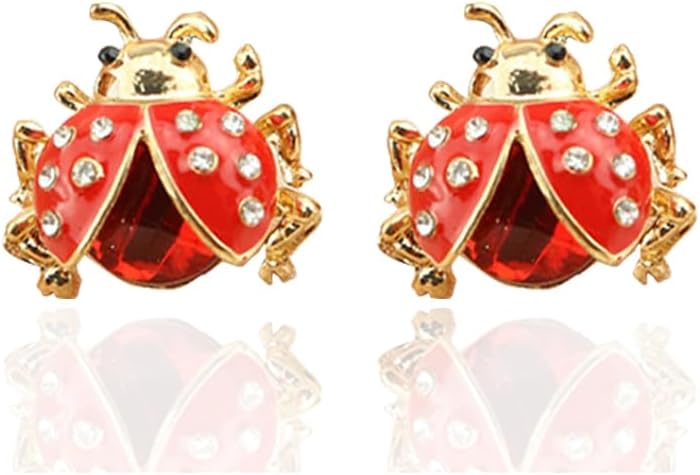 Dreuyet Colorful Ladybird Earrings for Women Trendy Cubic Zirconia Beetle Stud Earrings Cute Charm Insect Post Earrings