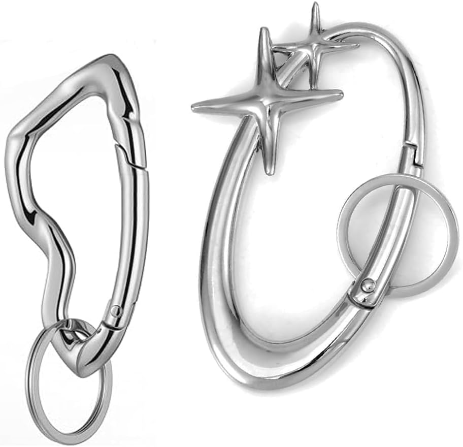 Y2K Cute Carabiner Keychain, Star and Irregular Cool Belt Loop Clip, Heavy Duty Carabiner Keychain Clasp Snap Hook Holder Key Buckle for Keys, Car Keys, Bags and Outdoor Gear