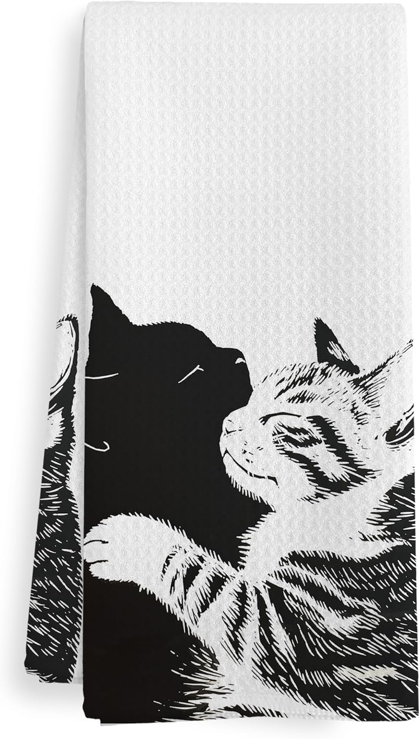 Valentine Valentines Cat Kitchen Towels for Cat Lovers, Cat Decor Decorations for Cat Lovers, Cat Gifts for Women, Funny Valentine Cat Bathroom Decor Dish Hand Tea Towels, 16x24 Inches