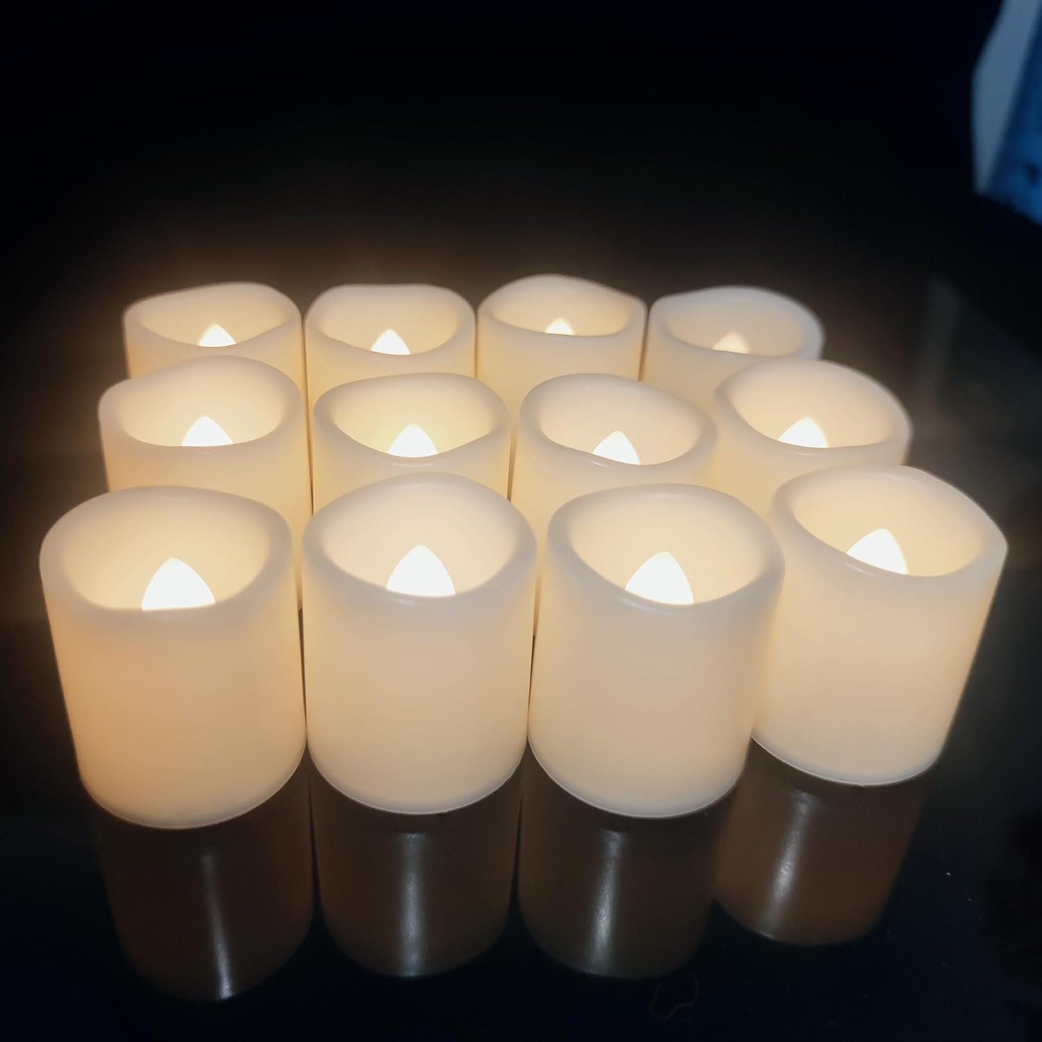 - [Used in Various Occasions] - The electric tealights are ideal for homes, kids room, restaurants, dinner table hotels, bars decor, birthdays, anniversaries, memorial decorations. You can place them where you want as tabletops, bookshelves, wishing bottles, pretty votive holders, gift bags, into the tree itself,into greenery or flower arrangements, etc
