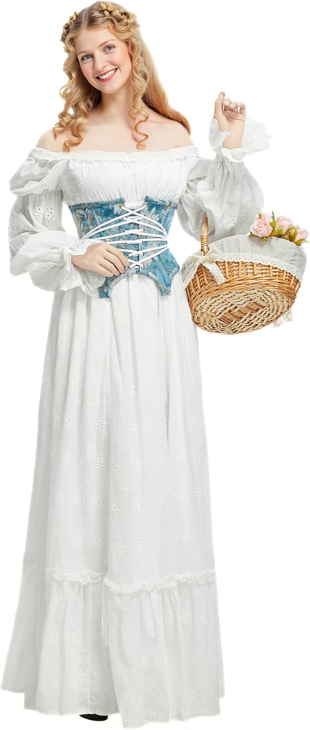 miccostumes Women's Victorian Dress Medieval Renaissance Costume Classic Edwardian Ruffle Fairy Corset Dress Fake two pieces