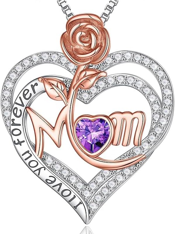 Rose Birthstone Gifts for Mom, S925 Sterling Silver Rose Heart Pendant Birthstone Necklace Mothers Day Valentines Day Christmas Birthday Jewelry Gifts for Mom