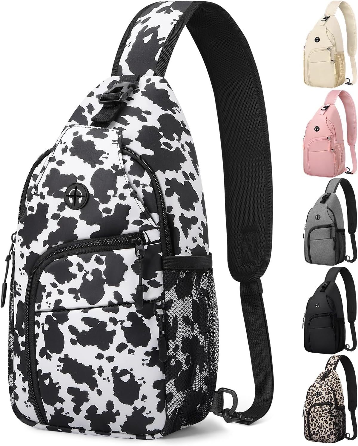 Crossbody Bags for Women Man Waterproof Sling Bag Backpack Trendy Casual Cross Body Bag with Convertible Shoulder Strap Chest Bag for Camping Hiking Travel Essentials (Cow print, Medium )