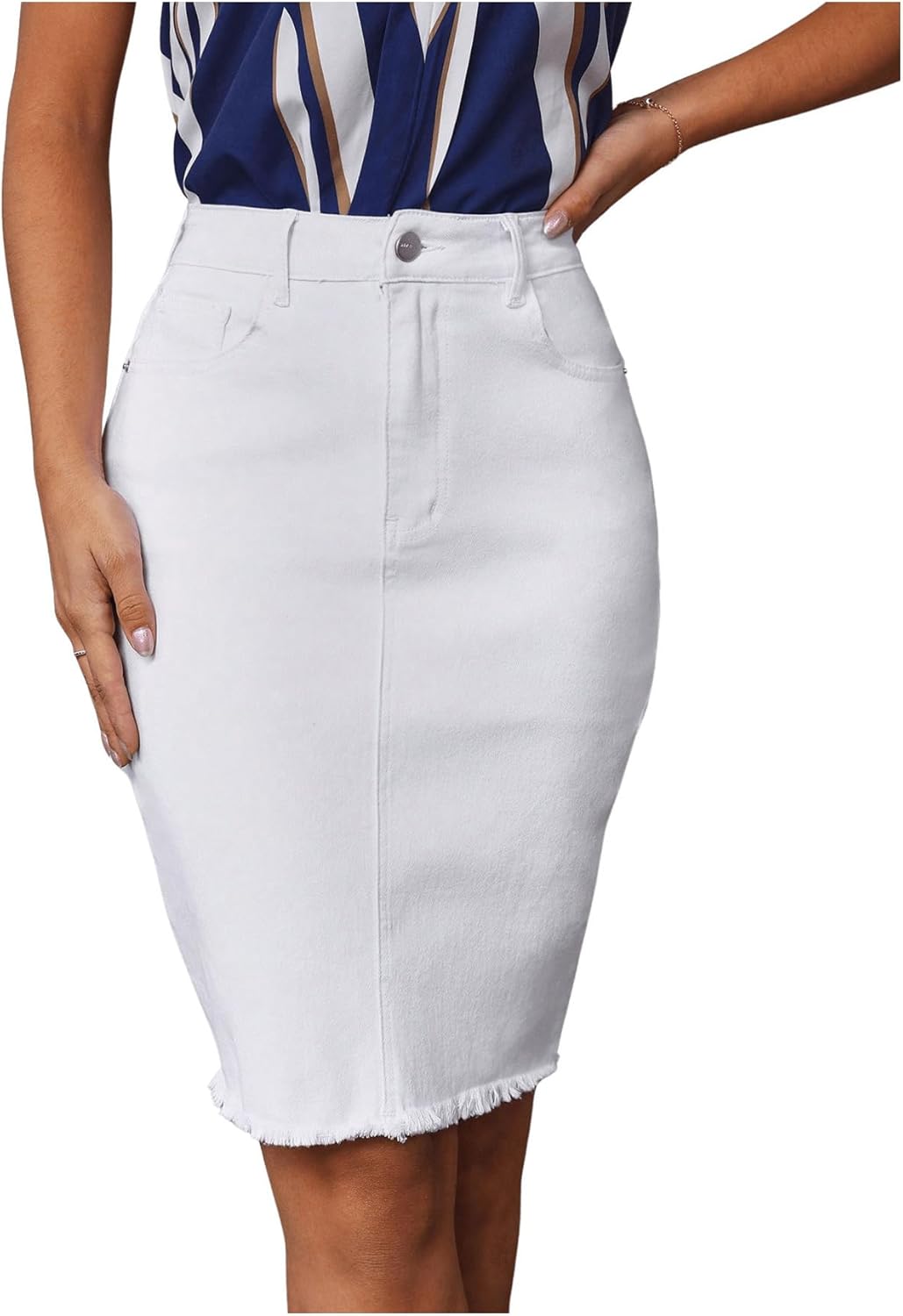 Floerns Women's Casual High Waist Raw Hem Bodycon Pencil Denim Skirt