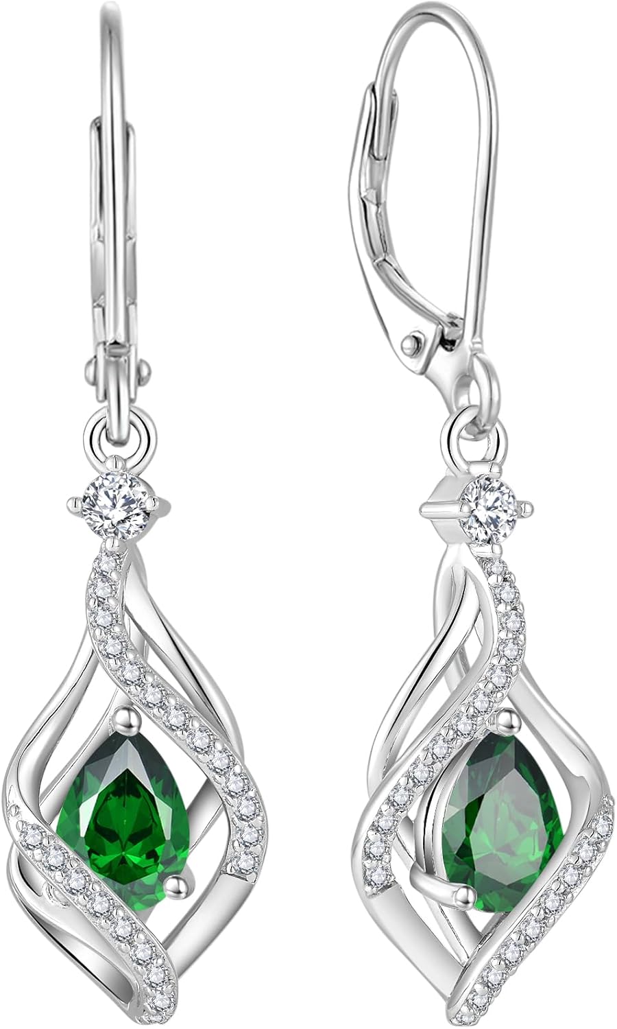Women Earrings,925 Sterling Silver 5A Cubic Zirconia Twist Dangle Drop Earrings with Birthstone for Her