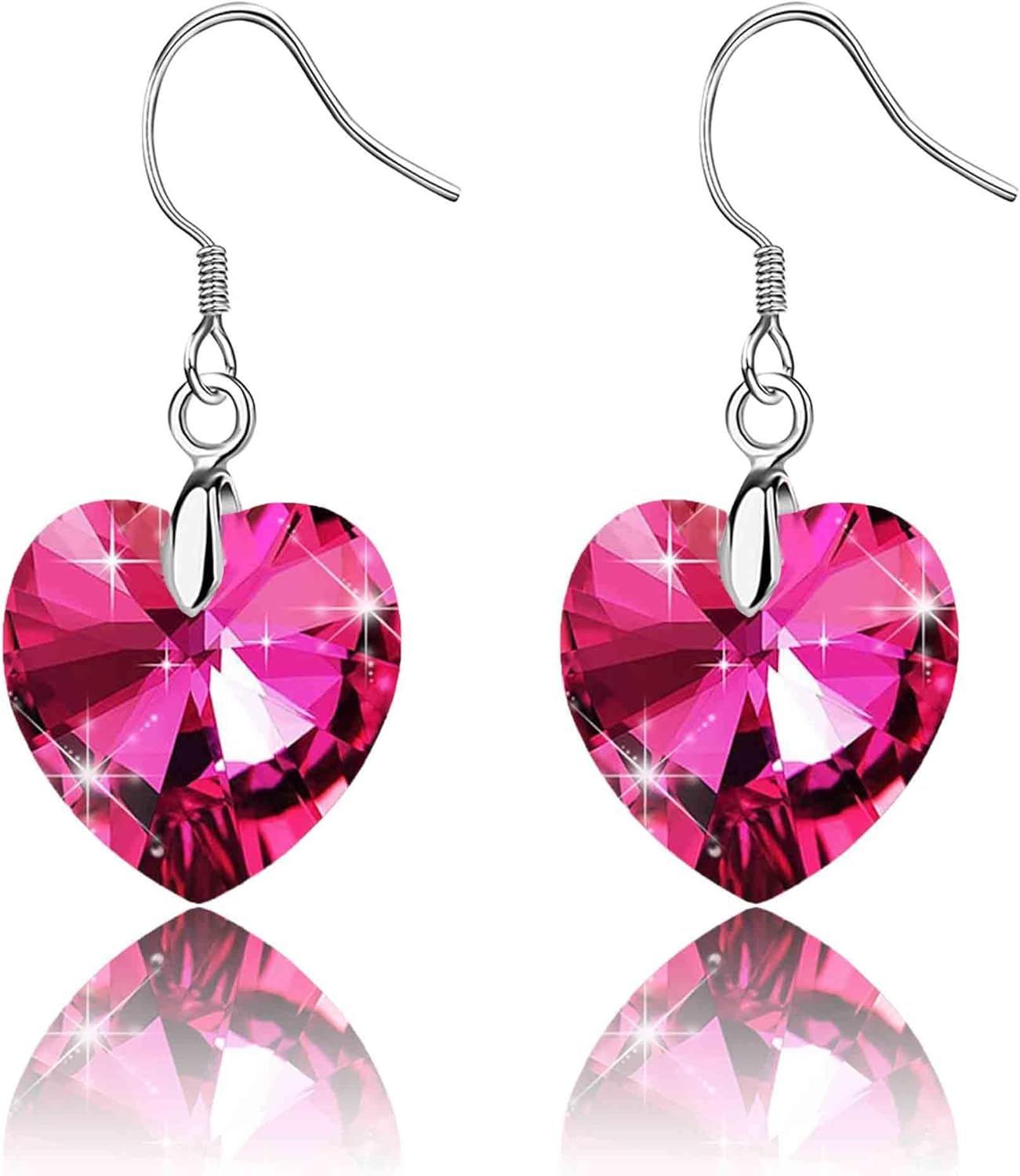 Austrian Crystal Heart Drop Dangle Earrings for Women 925 Sterling Silver Hook Hypoallergenic Earring
