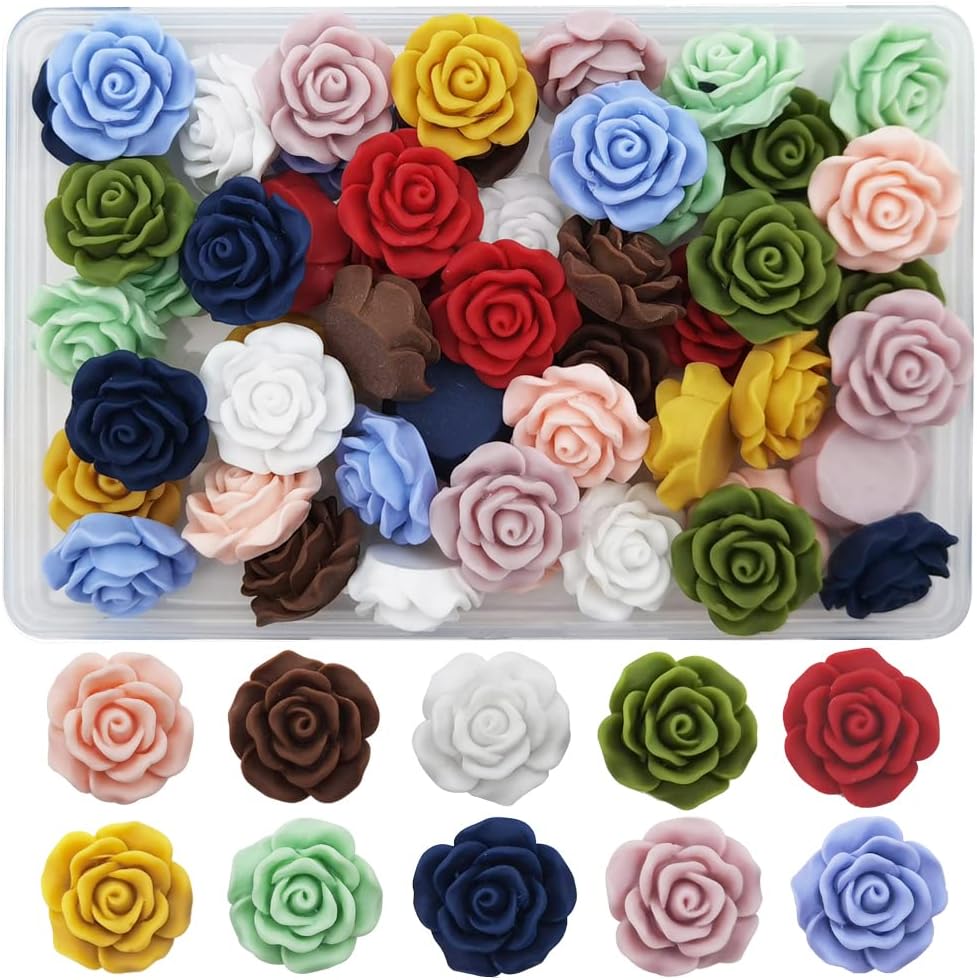 INSPIRELLE 50pcs 20mm Flatback Undrilled Opaque Matte Rose Flower Cabochons No Holes Resin Flat Back for Jewelry Making and Crafting