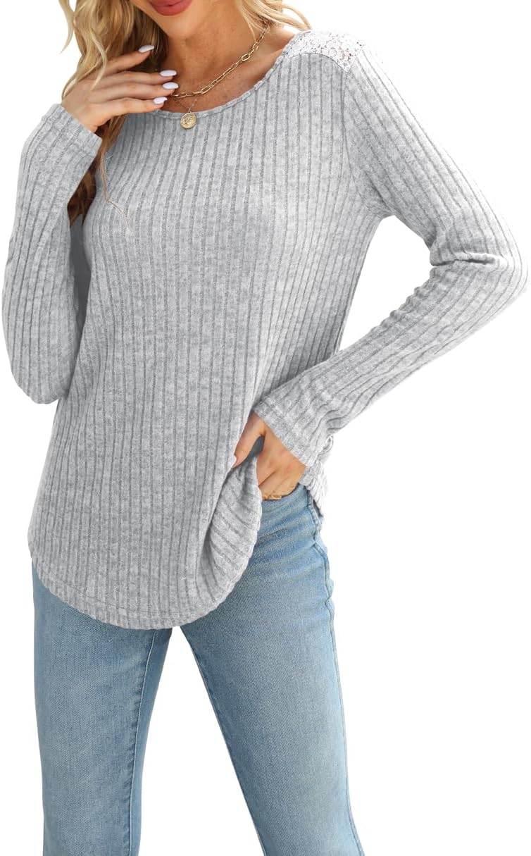 SVALIY Long Sleeve Shirts for Women Womens Fall Tops Sweaters Lightweight Crew Neck Tunic
