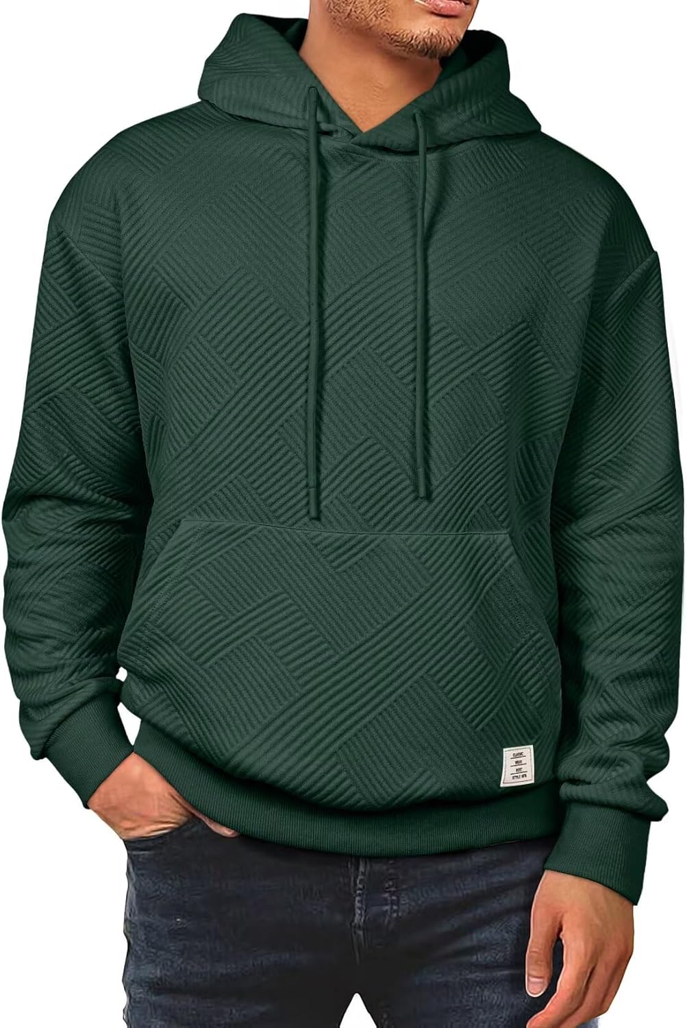Men's Casual Soild Color Hooded Sweatshirts Geometric Texture Graphic Long Sleeve Pullover Hoodies