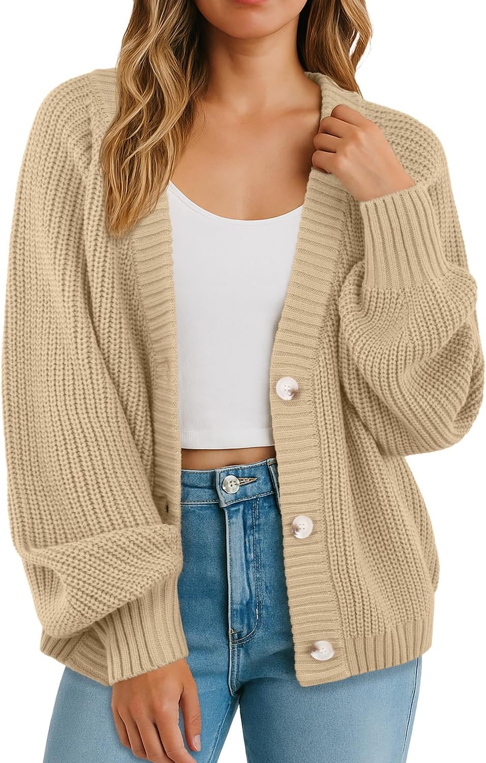 GRECERELLE Women's Cardigan Sweater Thick Knitted Open Front Long Sleeve Button Up Loose Casual Oversized Outerwear, S-2XL