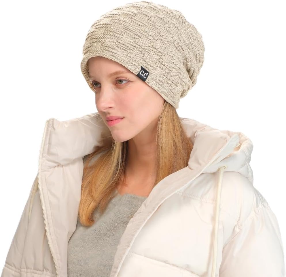 C.C Fuzzy Lined Beanie, Thick Soft Knit Winter Hat, Warm Cozy Skull Cap for Women & Men