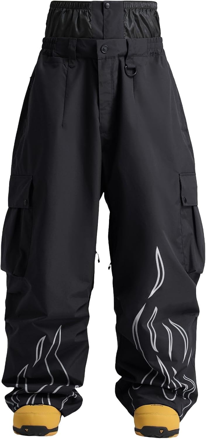GSOU SNOW Men Baggy Snowboard Pants Women Snow Pants Waterproof Cargo Snowboarding Ski Pants with Reflective Flame Graphic