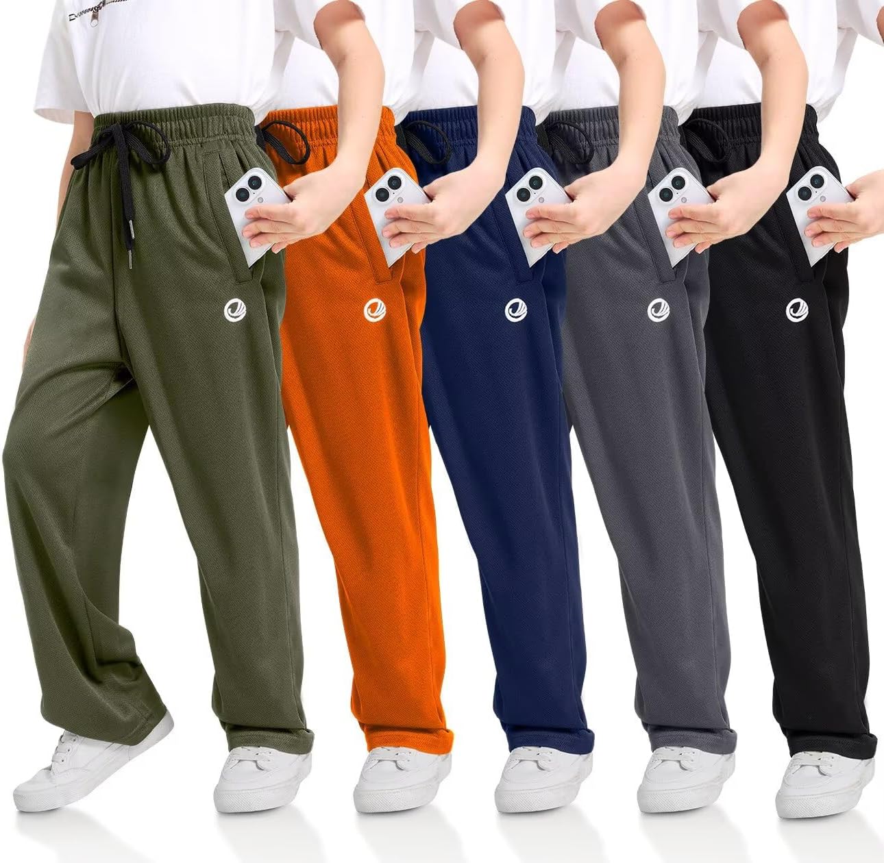 Boys Sweatpants with Zip Pockets 5Pack Athletic Pants Mesh Joggers for Boys 5-24