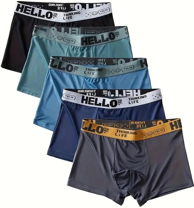 Men's Boxer Briefs, Ice Silk Underwear Ultra Breathable Quick-Dry Boxer Briefs Multipack,5-Pack