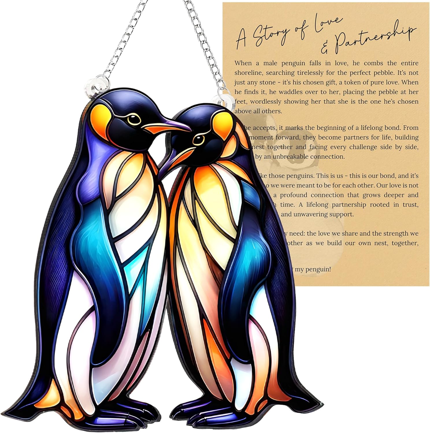 Beach Christmas Ornaments for Tree, Sea Turtle Acrylic Suncatcher Ornament with Story Card, Sea Turtle Gifts for Women, Beach Gifts for Women, Christmas Stocking Stuffers Ideas (Penguin)