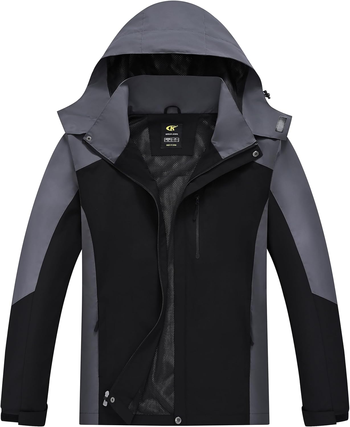 YuKaiChen Mens Rain Jacket Waterproof with Hooded Hiking Coat Lightweight Windbreaker