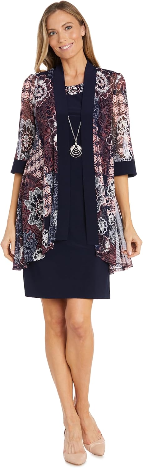 2PC Geometric Pattern Puff Print Mesh Jacket & Dress