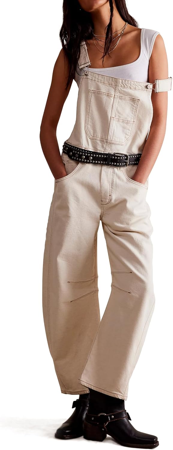 Qazel Vorrlon Denim Overalls for Women Barrel Wide Leg Bib Baggy Jeans Adjustable Denim Romper Stretch Jumpsuit Y2K Pants