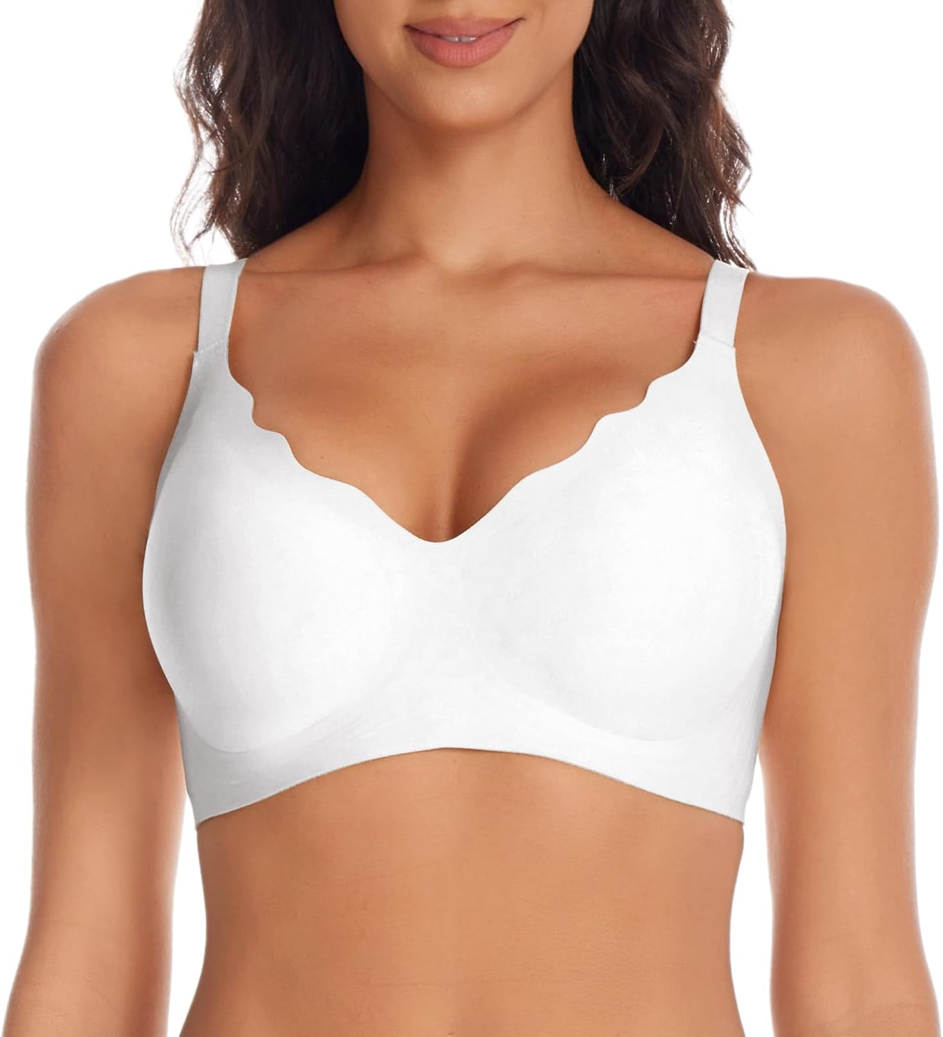 Womens Wireless Seamless Bras No Underwire Push Up Supportive Full Coverage Bralette Comfort Scalloped T-Shirt Bra
