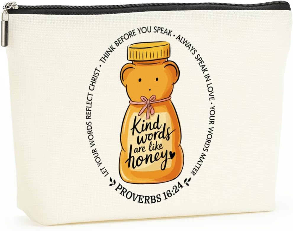 Christian Gifts for Women Faith Jesus Bible Verse Makeup Bag Bear Trendy Coquette Cosmetic Bags Inspirational Gifts for Women Niece Coworker Birthday Christmas Zipper Pouch Travel Toiletry Bag