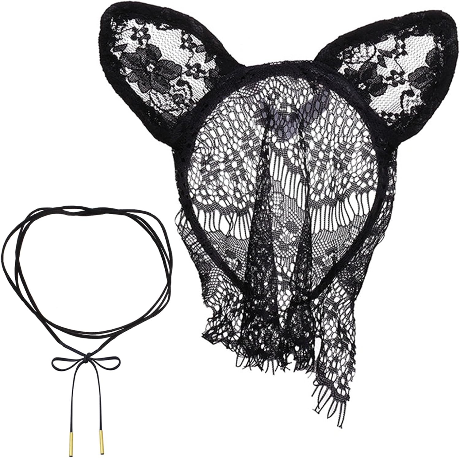 Bunny Ears Headband Black Lace Mask Rabbit Hair Hoops Women Sexy Cute Cat Animal Headpiece Hairband Hair Bands Masquerade Halloween Christmas Easter Birthday Cosplay Dress Up Party Hair Accessories