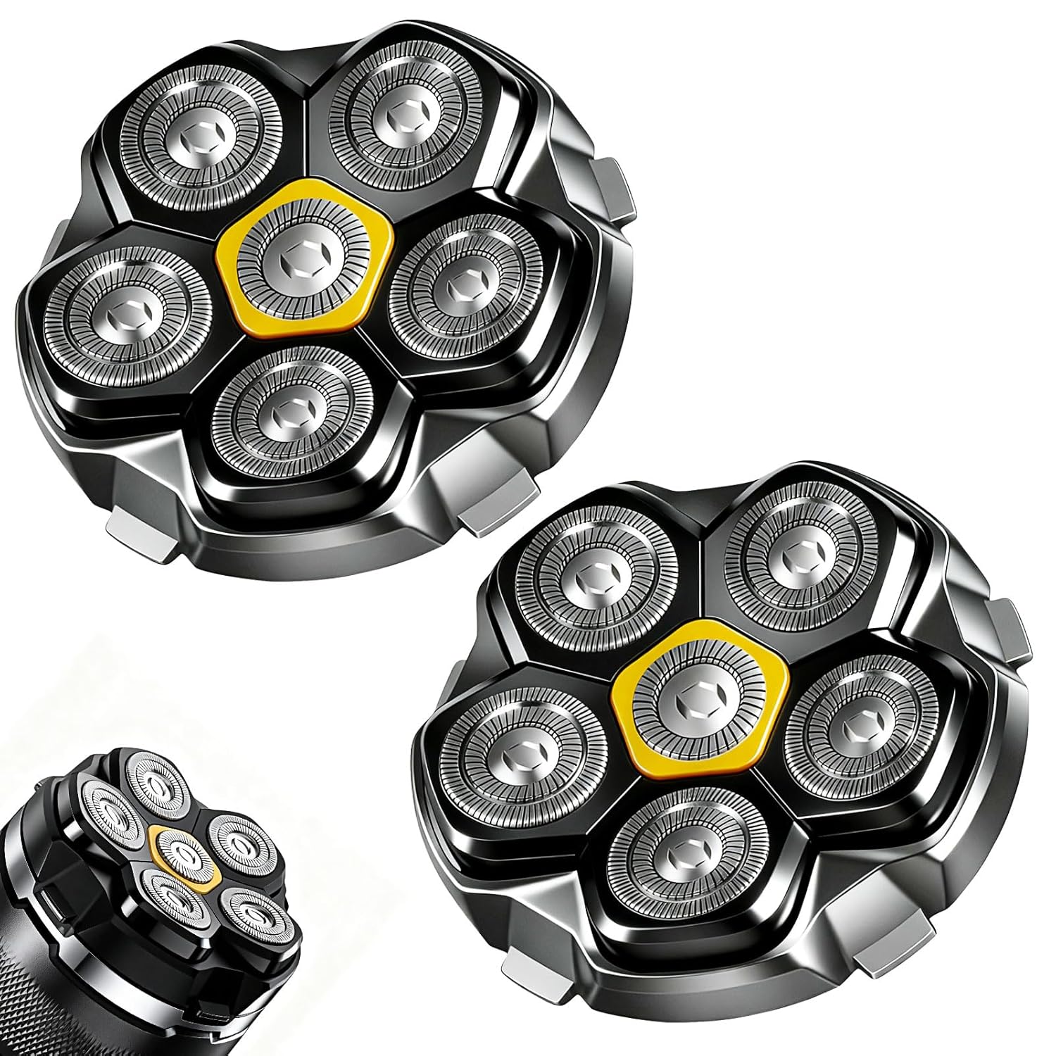 Magnetic 6 Head Shaver Replacement Heads for 6D Magnetic Electric Shaver Razor Universal Shaver Replacement Head for Bald Men and Face (Black(2PACK))
