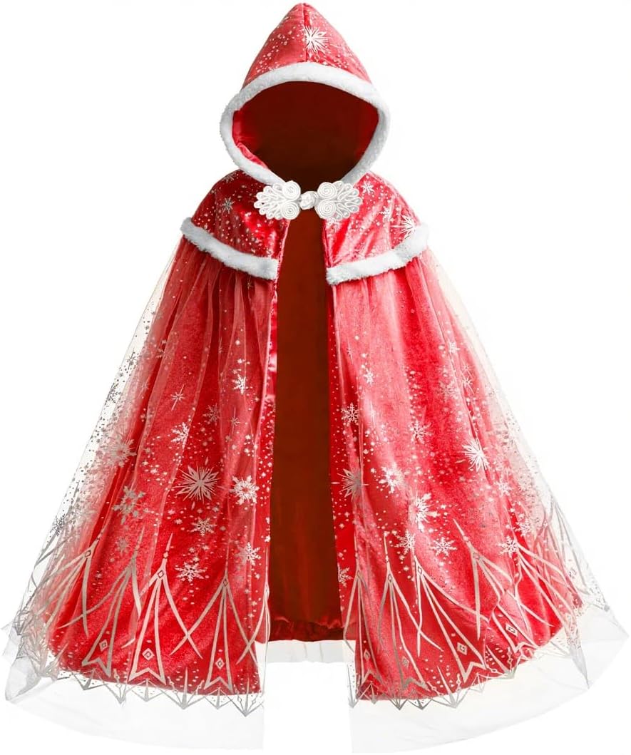 Girls Elsa Hooded Velvet Cape Kids Princess Dress up Cloak Girls Velvet Fancy Dress up