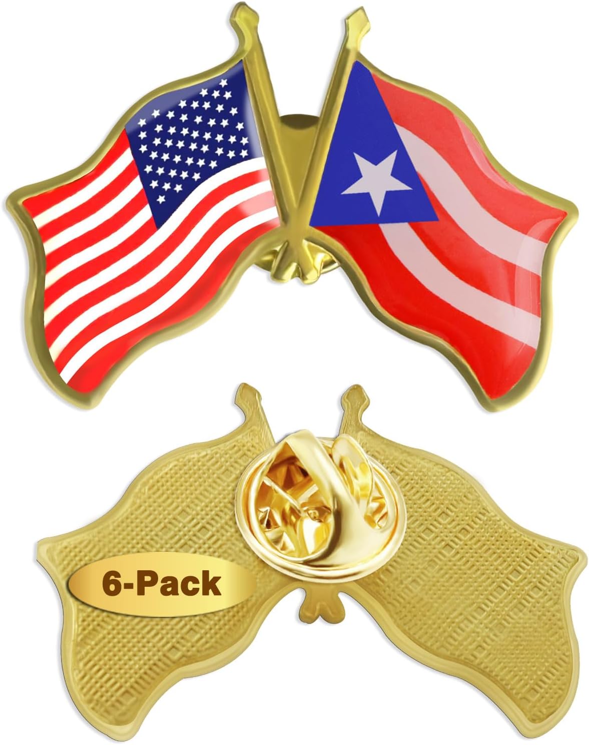 USA and Puerto Rico Flag Die-struck Metal Friendship Lapel Pin with Butterfly Clasp Closure
