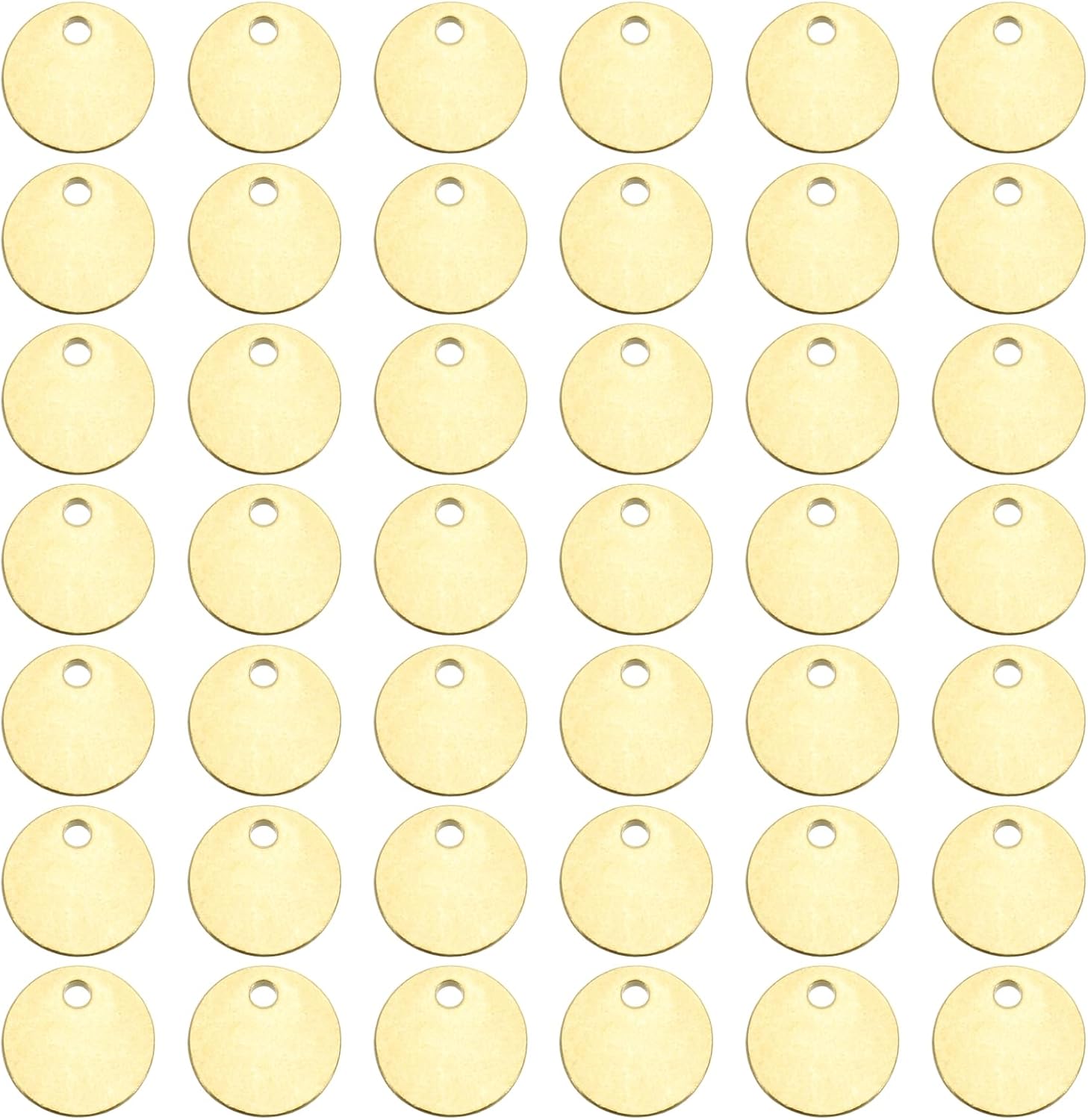 - [Package Content] - You will receive 58 pieces of blank brass tags for labeling or jewelry pendants in 10mm/0.39-inch diameter, 1mm/0.04-inch thickness, and with a 1.2mm/0.05-inch hole. The sufficient quantity satisfies your daily requirements and allows for ample replacements.