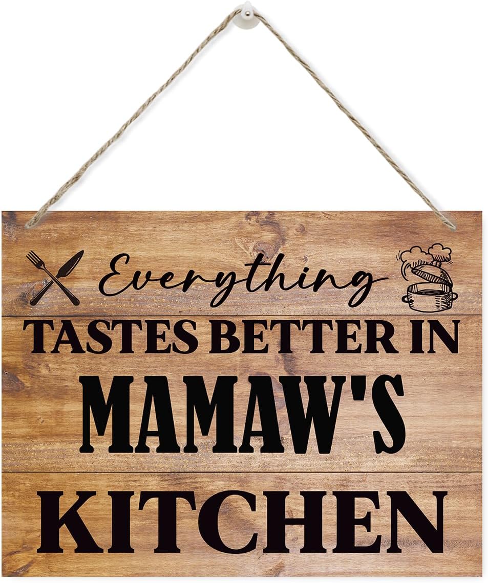 Hanging Wooden Kitchen Gifts, Grandma's Gift, Mother's Day Gift, Thanksgiving Gifts for Mom from Daughter Son, Everything Tastes Better in Mamaw's kitchen Sign, Rustic Farmhouse Sign 15x11.4 Inches