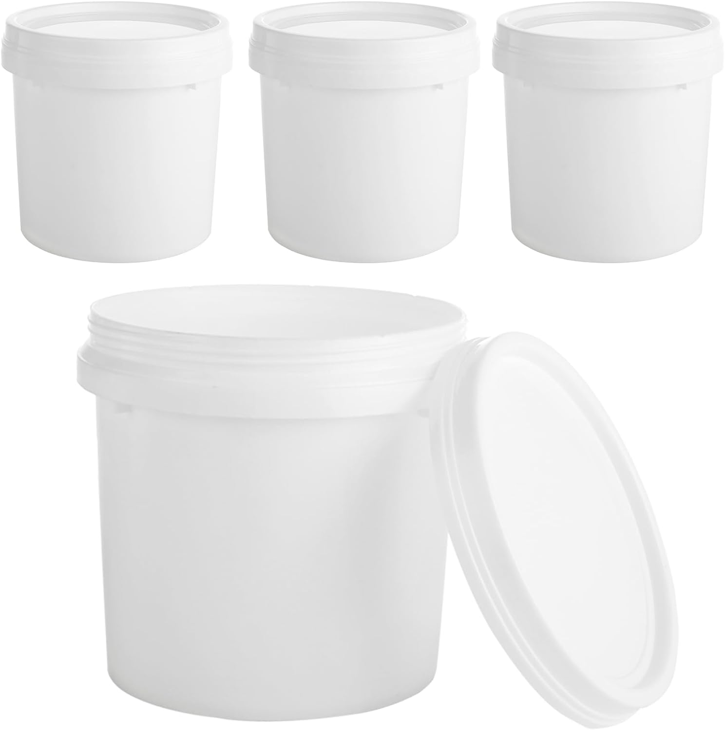 - Package & Size: Package contains 4 pack 1 Quart Paint Can with Lids. Plastic Paint Bucket are 4.7 inch in height, 4.7 & 4.3 inch in top & bottom diameter. Enough amount and perfect size to meet your needs of daily use, replacement and sharing with others.