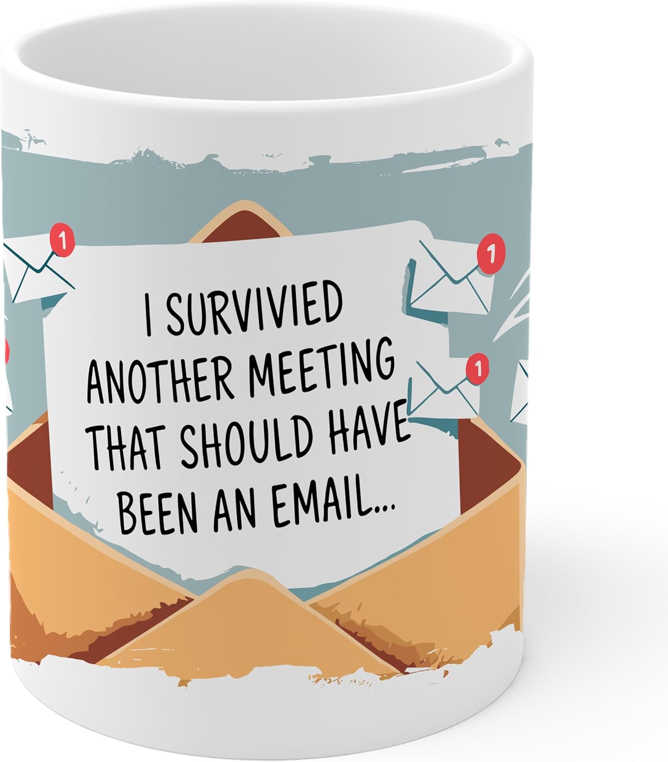 I Survived Another Meeting That Should Have Been an Email Ceramic Coffee Mug 11oz Work Office Humor - Tea Coffee Mug with Comfortable Grip - Unique Fun Gift White Cup for Home - Vibrant ID44991