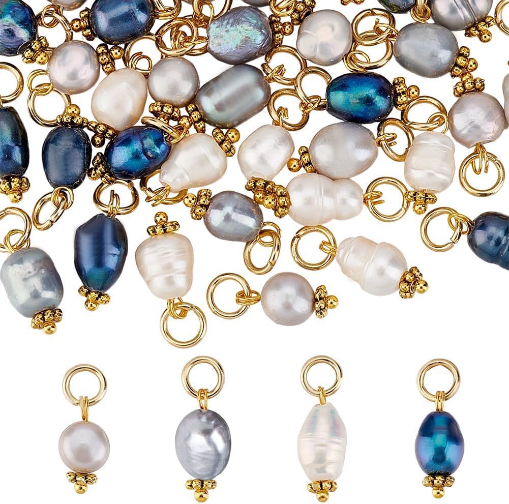 PH PandaHall 40pcs 4 Styles Natural Pear Pendant Charms Pearl Charms for Jewelry Making with Loops, Pearl Dangle Charm with Golden Brass Loops for Earring Bracelet Necklace DIY Jewelry Making