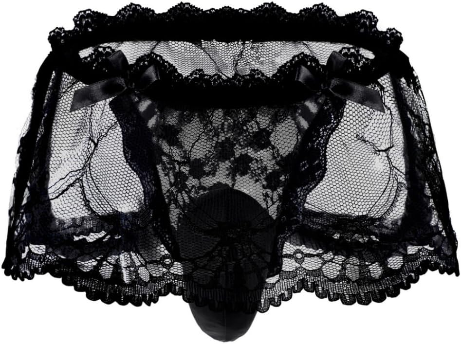 Mens Lace Sexy Underwear, Sissy Pouch Panties Femboy For Men, Low Rise Bow Lingerie Fits 34-42, Sheer Girly