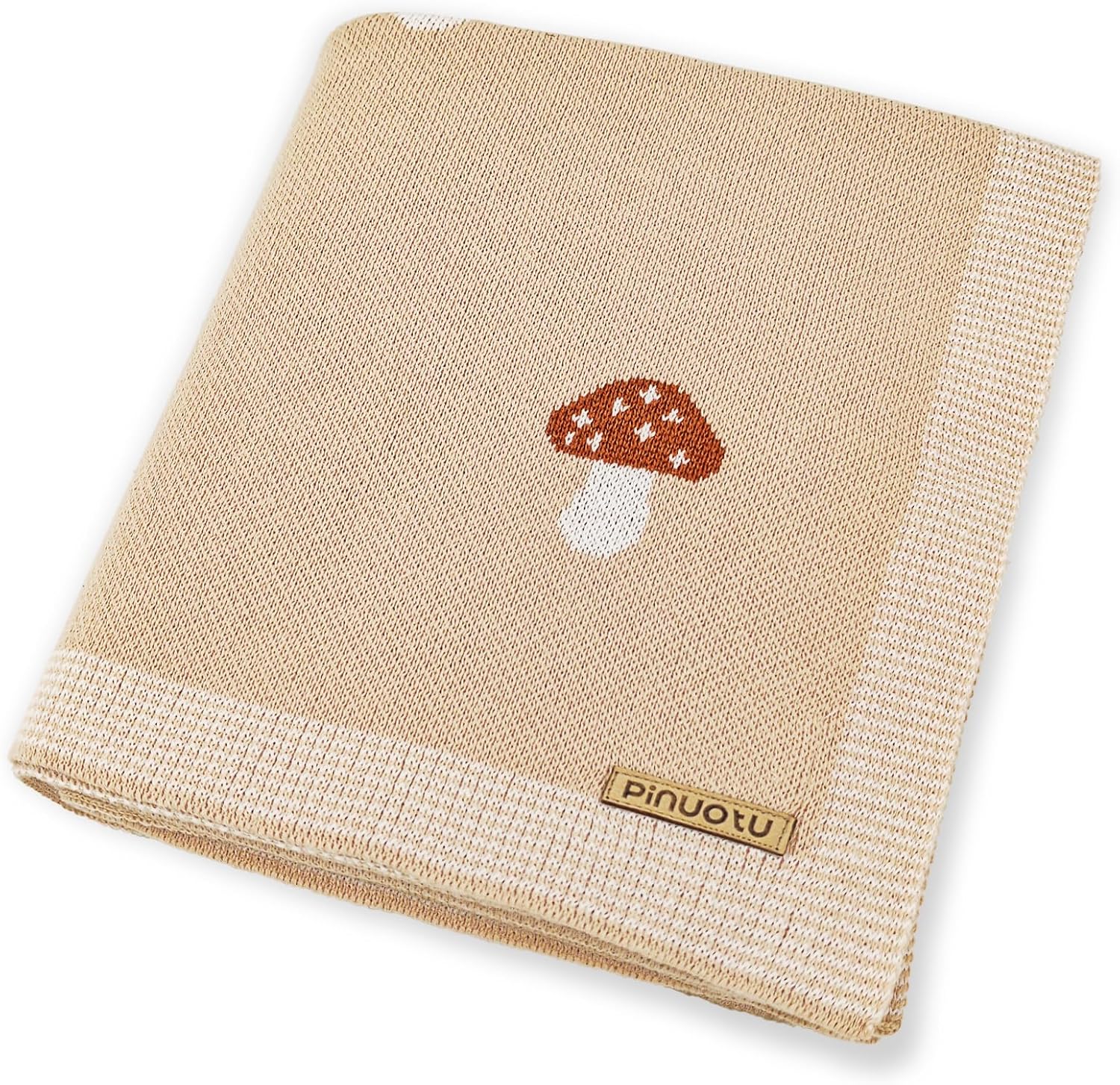 Mushroom Baby Blanket for Boys & Girls,100% Cotton Knitted Receiving Swaddle Crib Stroller Blanket (Cream /40x 31 inches)