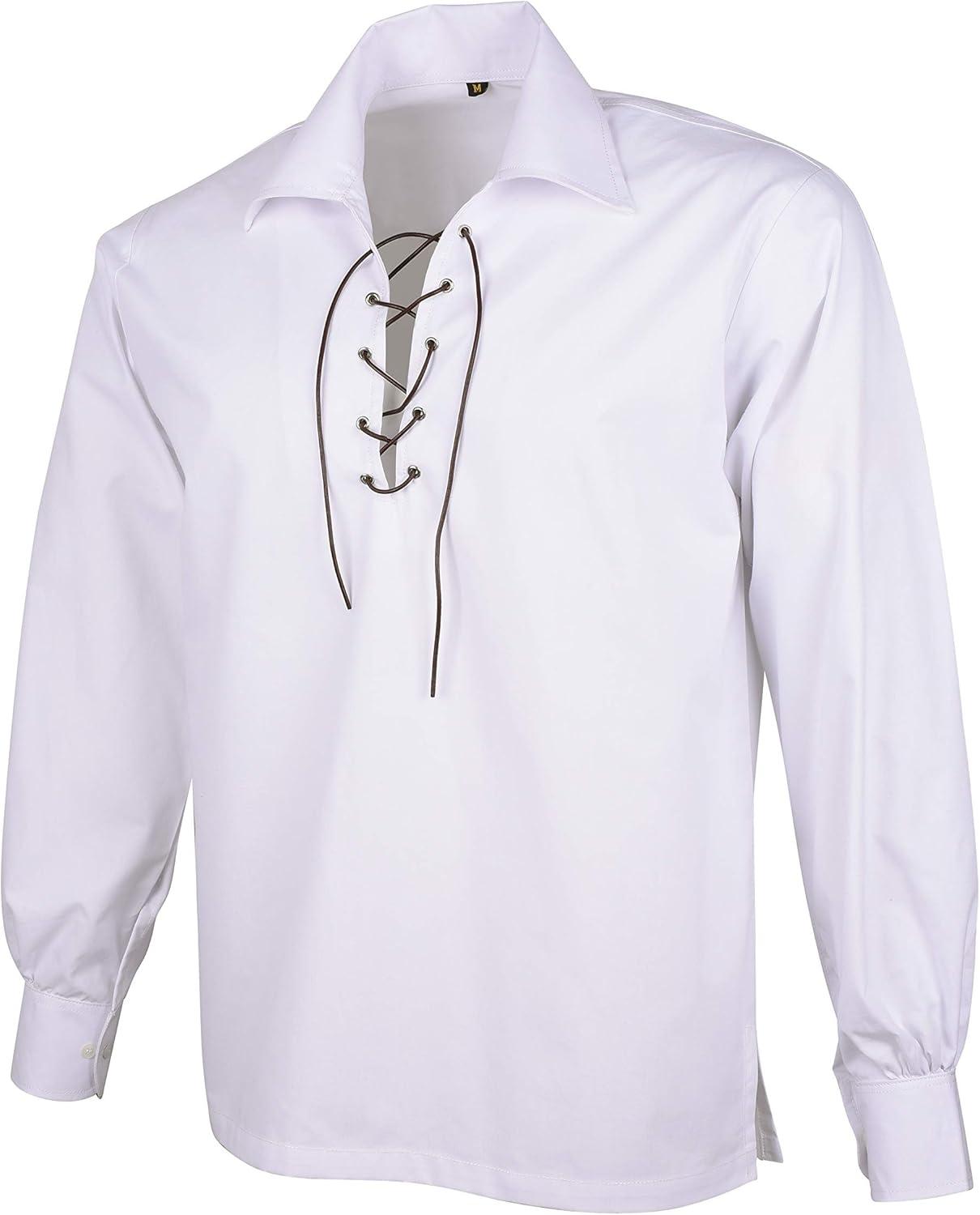 DSS Kilts-Jacobite Ghillie Kilt Shirt for Men – Long Sleeve Lace-Up Highland Kilt Shirt, American Sizes Big and Tall S-7XL