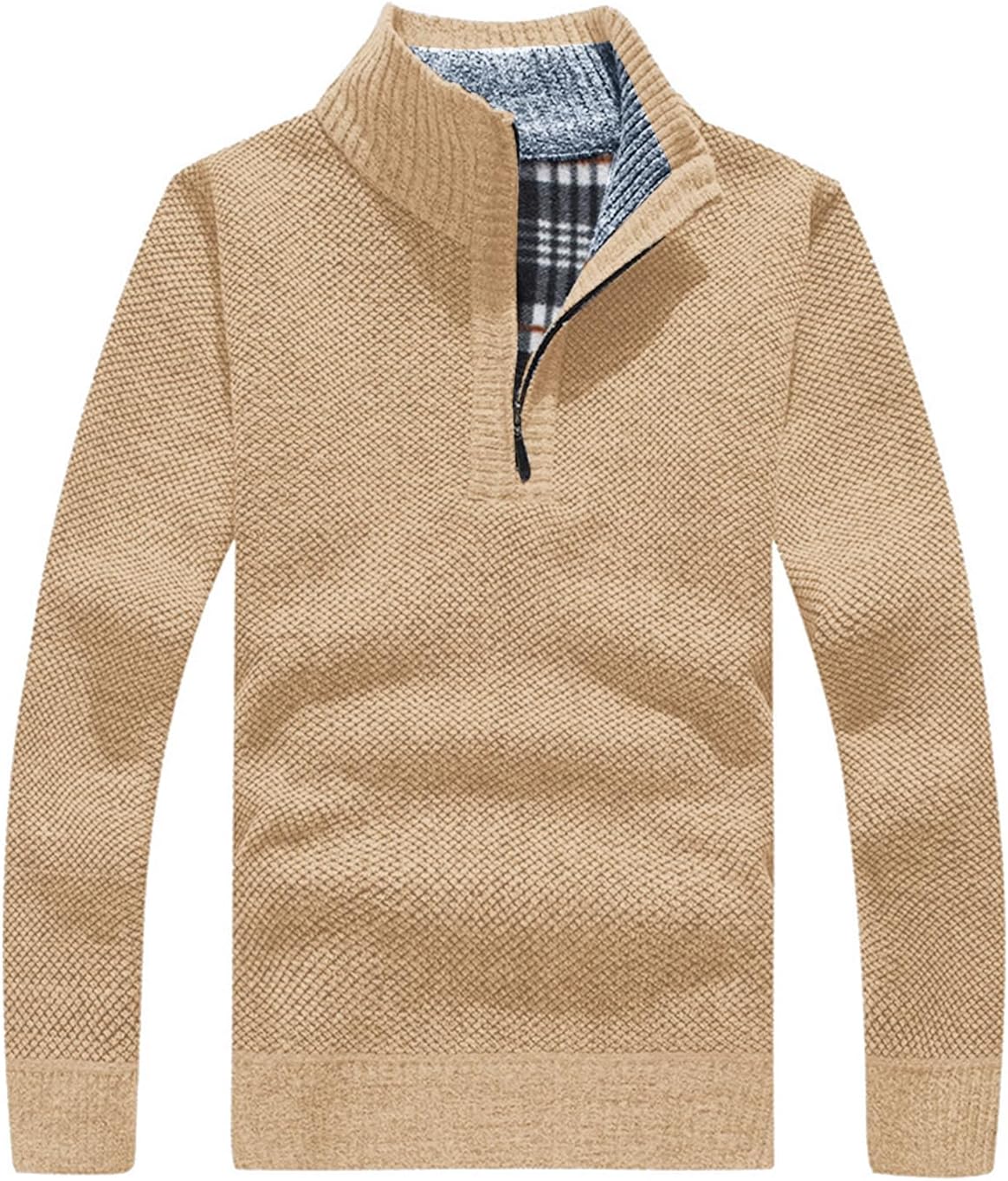 Les umes Mens Half Zip Jumper Plaid Fleece Lined Turtleneck Knit Sweater Long Sleeve Warm Stand Collar Pullover
